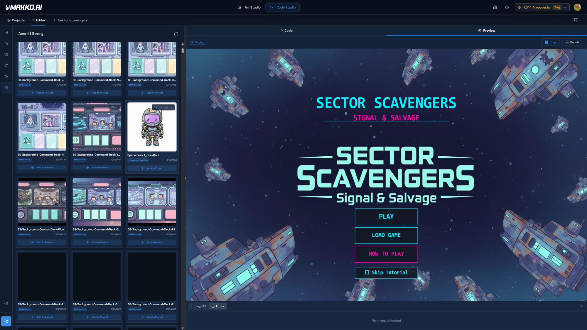 - Open Code Studio, describe the game, and pull characters from the asset library into the project